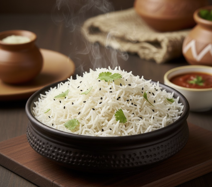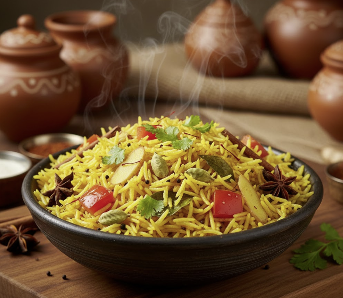 Arroz basmatí con azafrán, cardámomo, tomate, jengibre y otras especias (madrás)