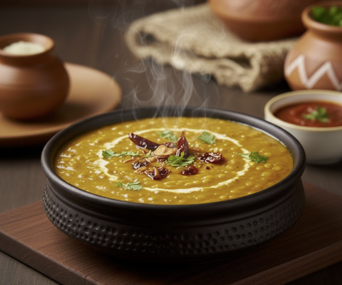 Verduras y lentejas cocinadas en una fragante mezcla de especias.